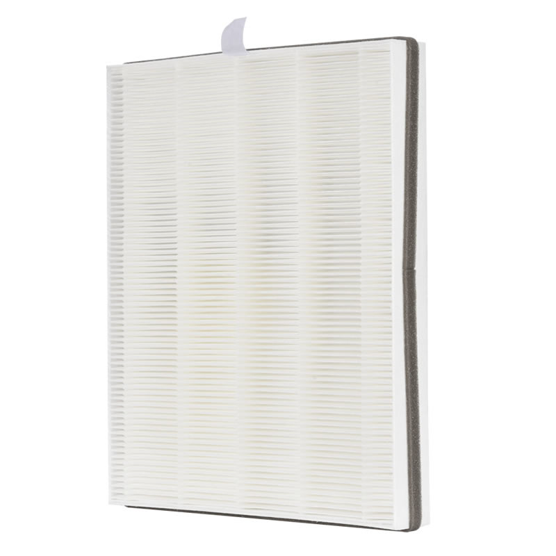 Este filtro integrado HEPA y de carbón activo captura eficazmente partículas nocivas tan pequeñas como PM0.02, incl.PM2.5, alergenos, bateria y virus.También absorbe y bloquea el formaldehído, el TVOC y el olor dentro de sus poros de tamaño nanométrico.